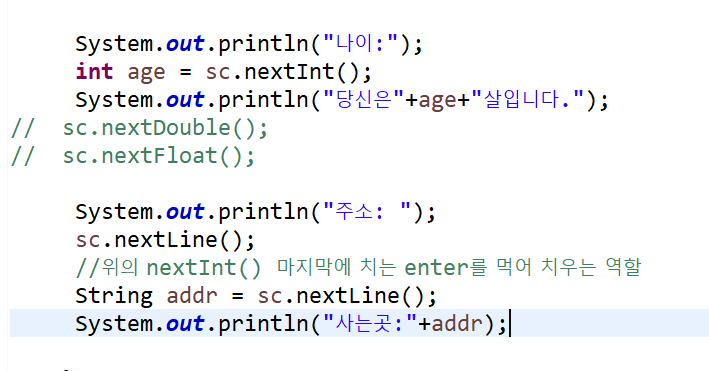 Scanner sc = new Scanner(System.in); // 입력을 위해서 준비시키는 과정