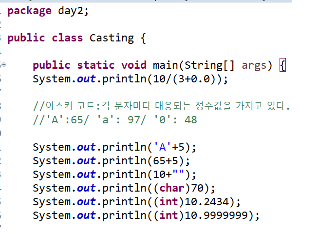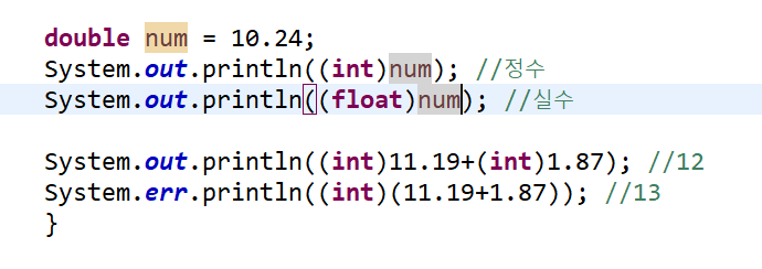 :자바에서는 정수와 정수의 연산은 결과도 정수로 나온다.(ex: 10/3 =3)