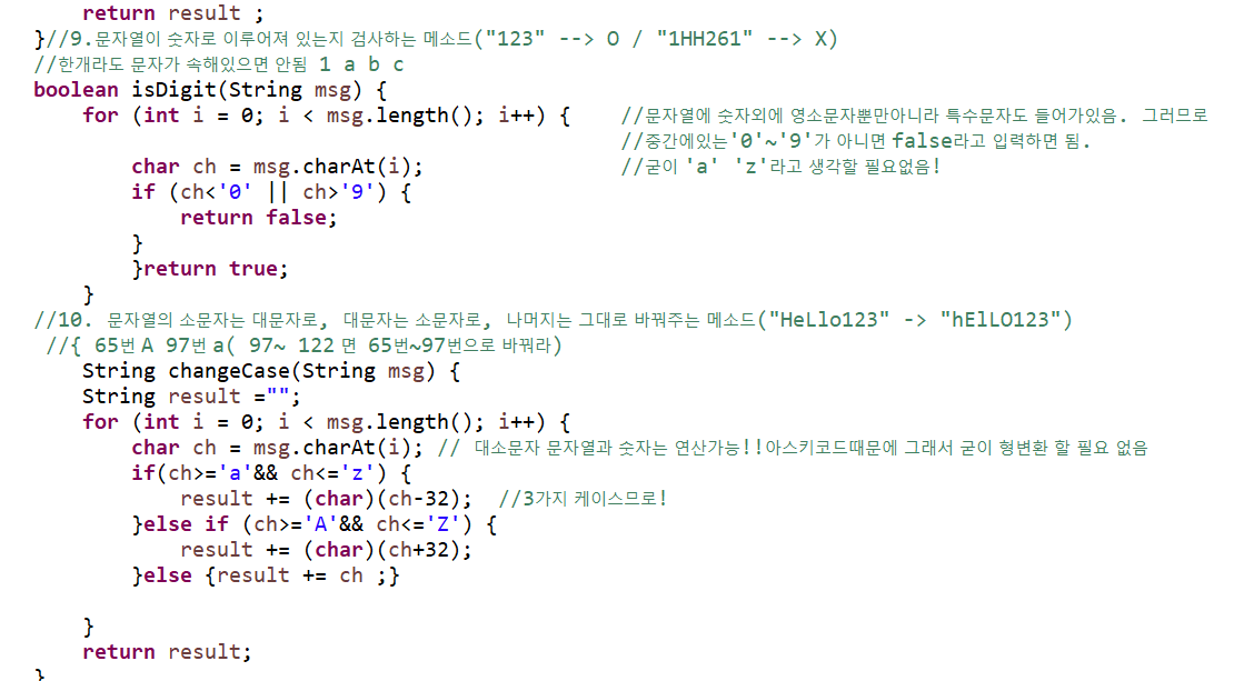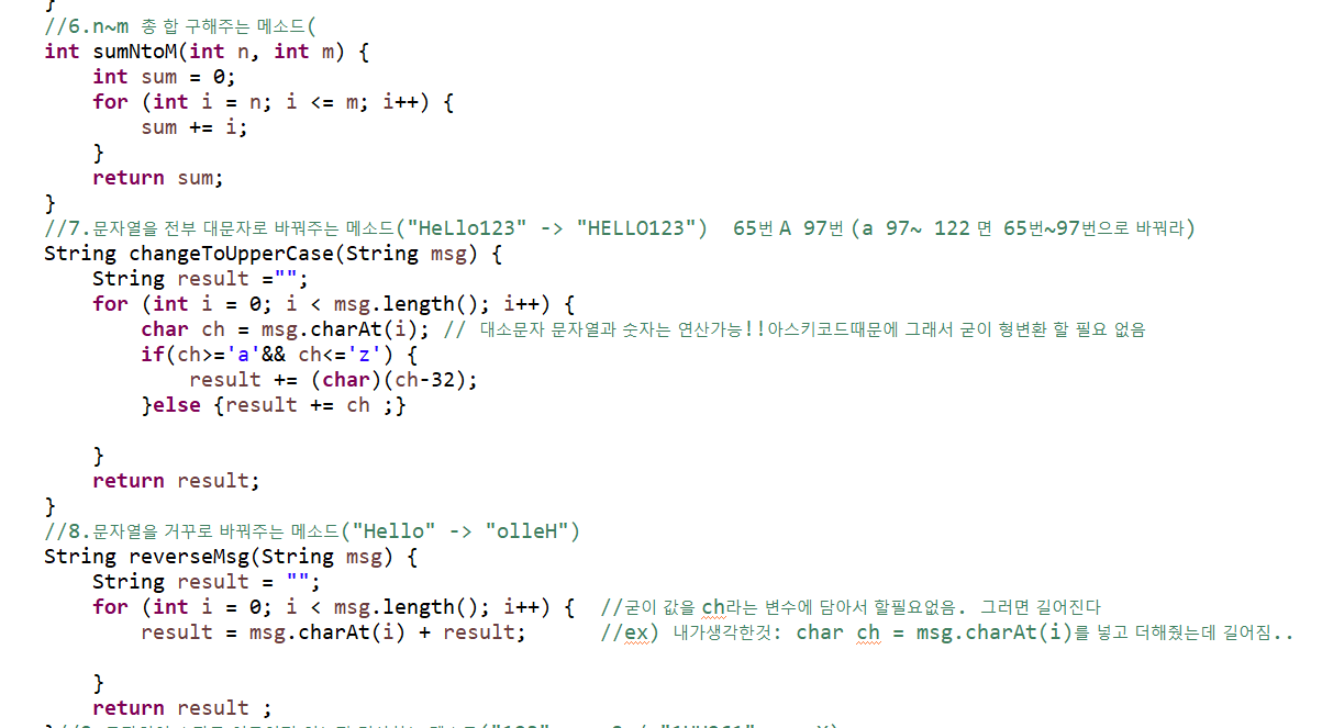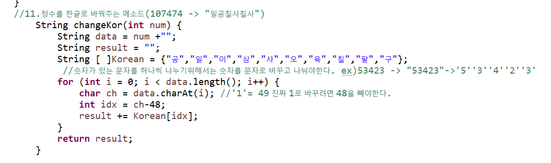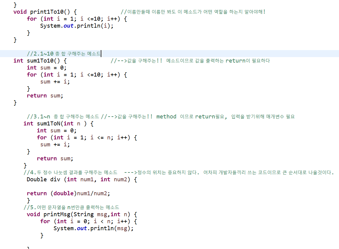 **메소드 사용 부분은 선언부 마지막에 return값이 있다면 사용한 부분 통째로