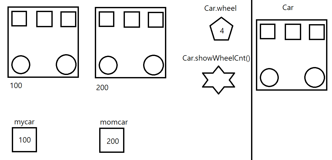 ---> mycar.wheel이면 100번지에 필드로 들어간다. 근데 Car.wheel이 없다.