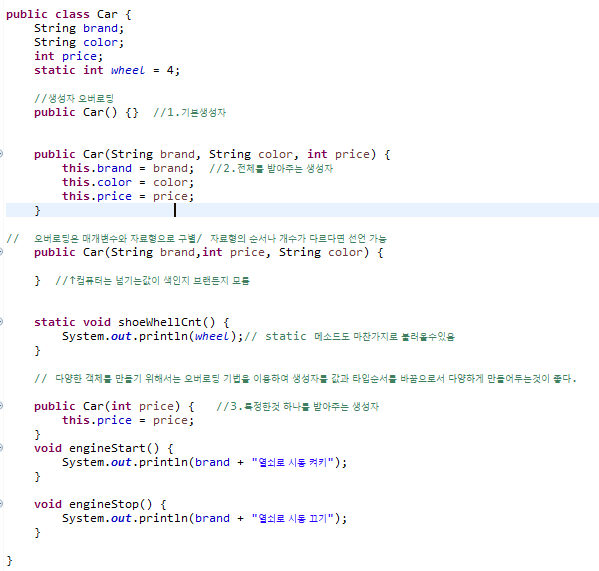 public Car(int price, String color, String brand){} //자료형의 타입을 다르게 함