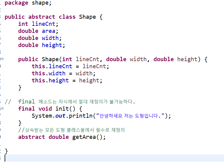위 예제를 보면 추상클래스를 사용하는 방법과 추상클래스가 어떤의미를 갖고 있는지 알게될 수 있다.