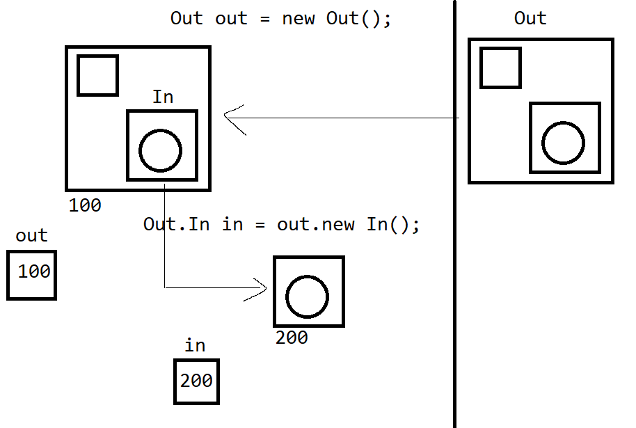 외부 클래스의 필드에서는 자신이랑 같이 올라와 있는 내부 클래스를 바로 객체화 할 수 있다. 보통은 어떤 메소드의 호출 결과로 내부 객체를 부여받아서 사용하는 방식으로 설계된다.