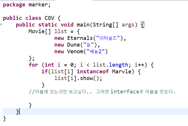--> 인터페이스는 추상메소드(부모)이므로 자식 클래스에서 무조건 재정의 해주어야 한다. 그래서 자식클래스의 메소드에서 인터페이스의 메소드를 호출한 것이다.