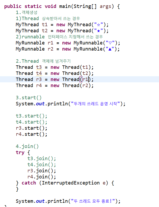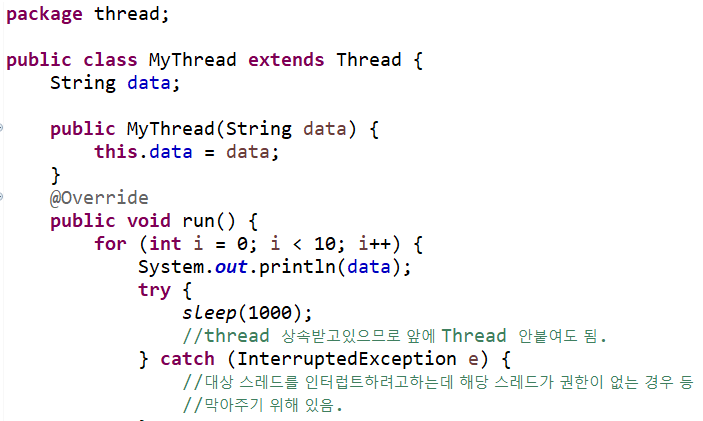 *마지막에 try ,catch로 쓰레드의 예외를 잡아준다.