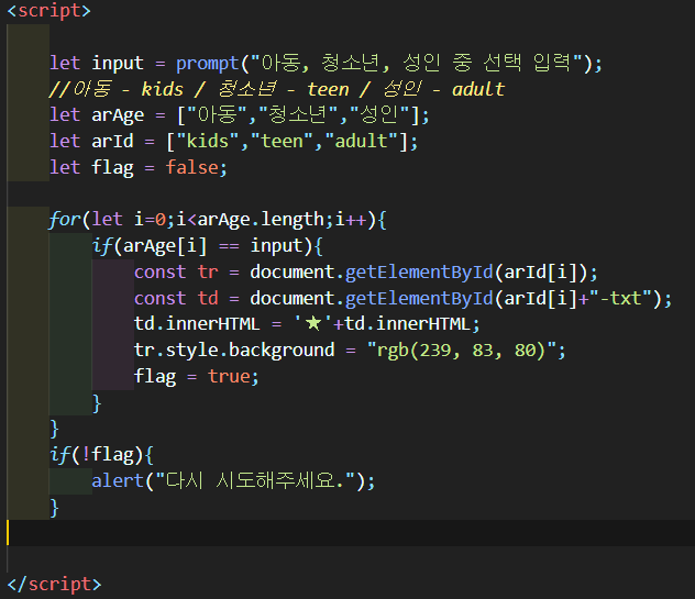 3.선택한 나이에 따라 box 색 바뀌게 하기, ★붙이게 하기