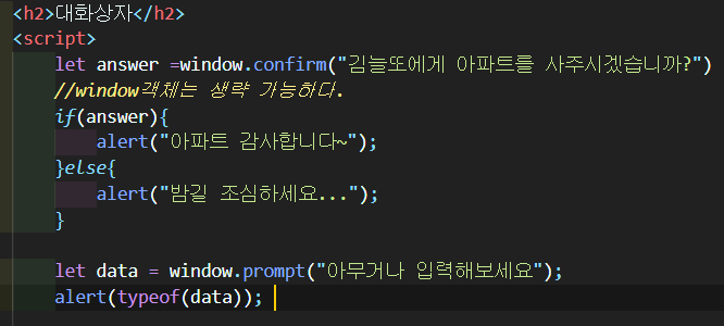 let answer = window.prompt("값을 입력하세요");