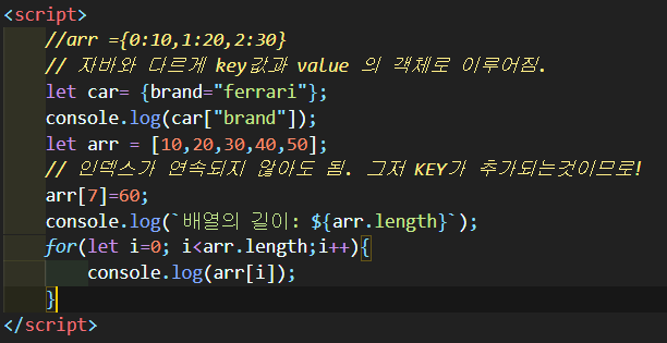 : 배열 요소의 인덱스가 연속적이지 않아도 됨