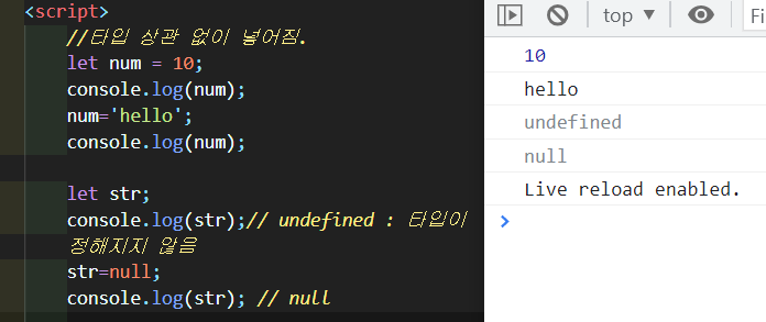 undefined : 타입이 정해지지 않은 것을 의미