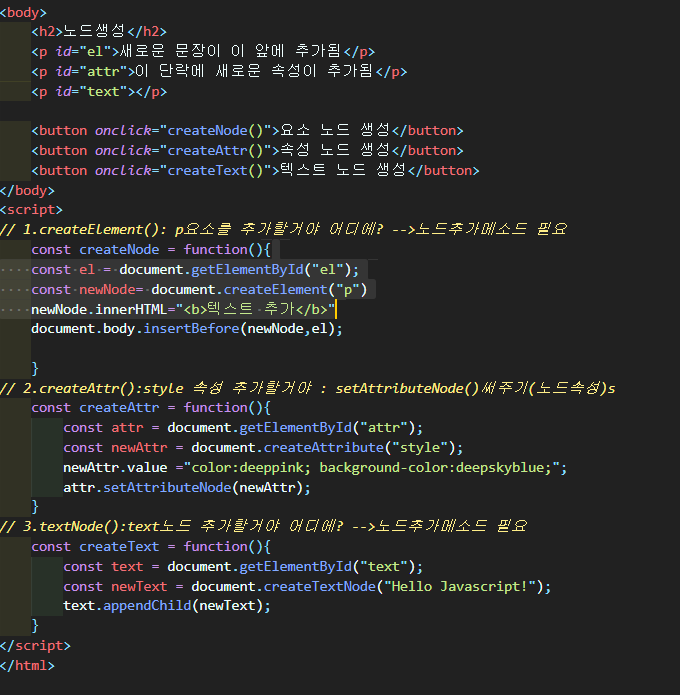 createTextNode(추가할 텍스트 내용) :새로운 텍스트 노드 만들기