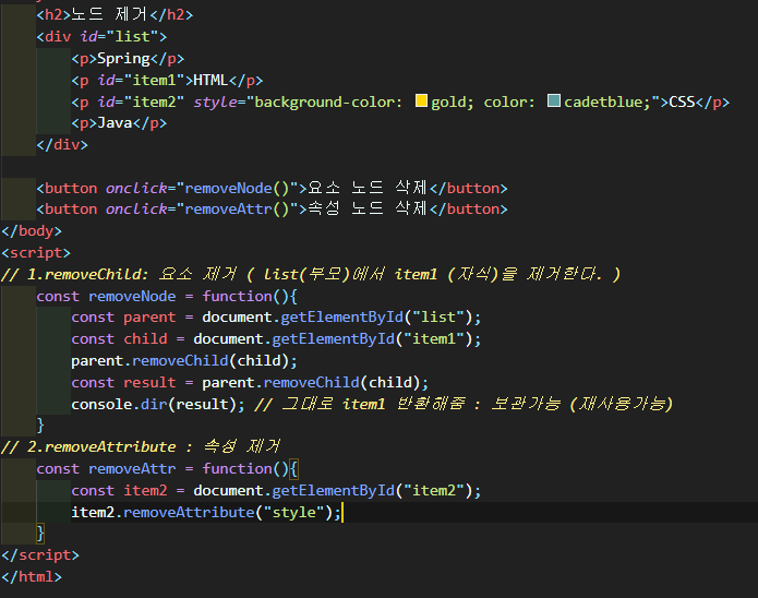 removeChild() :자식 노드 리스트에서 특정 자식 노드를 제거