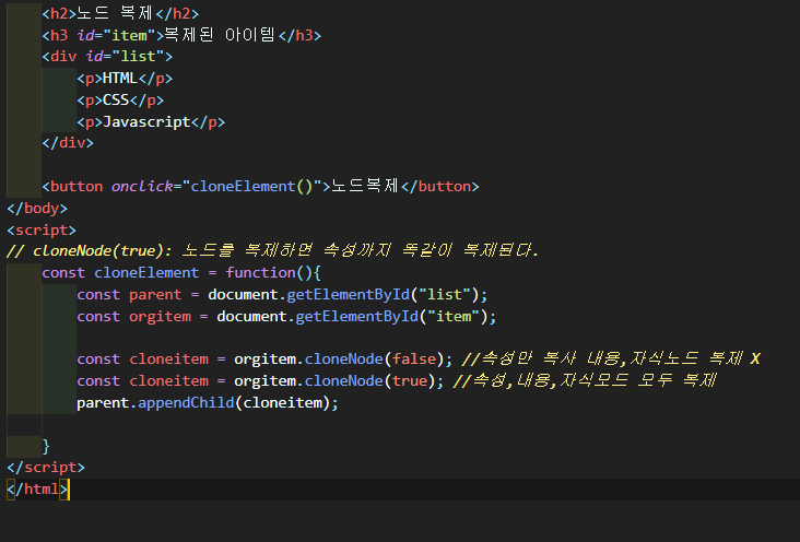 true :복제되는 노드의 모든 속성과 자식노드도 같이 복제