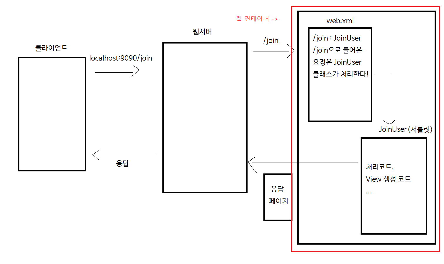 2.웹서버가 처리 못함. 그러므로 join이 들어왔어요 하며 web container 에 있는 web.xml 에서 join을 찾는다.