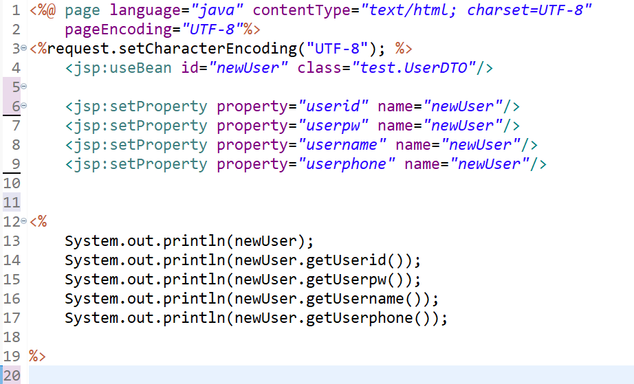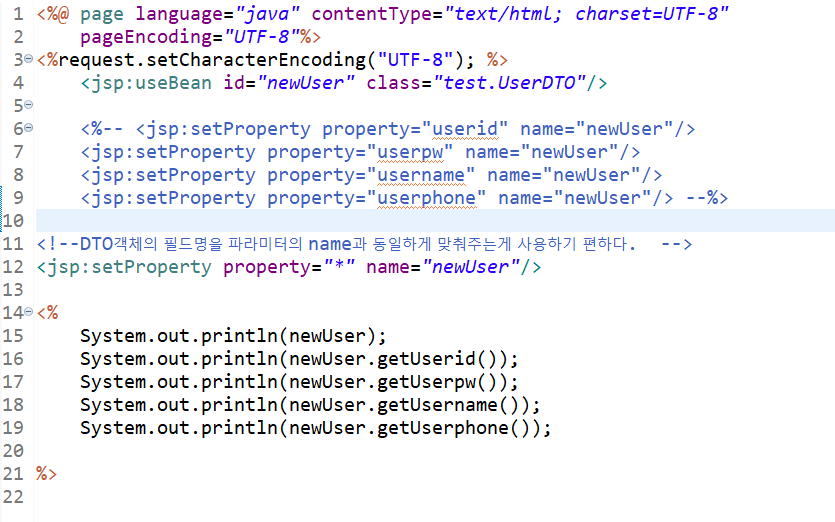 <jsp:useBean id="newUser" class="test.UserDTO">
