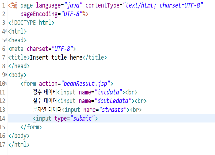 2.submit 누르면 처리페이지로 이동하여 자바빈즈태그써서 객체 생성하기