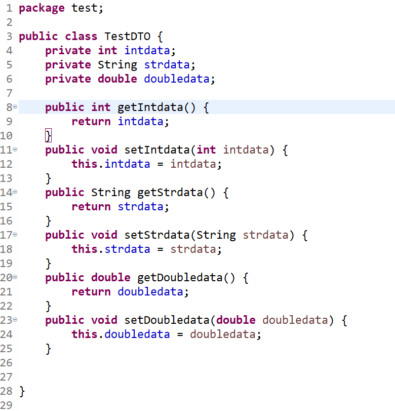 2.필드 변수 접근자는 private으로 설정(접근은 메소드로만 가능하게 하기 위함)