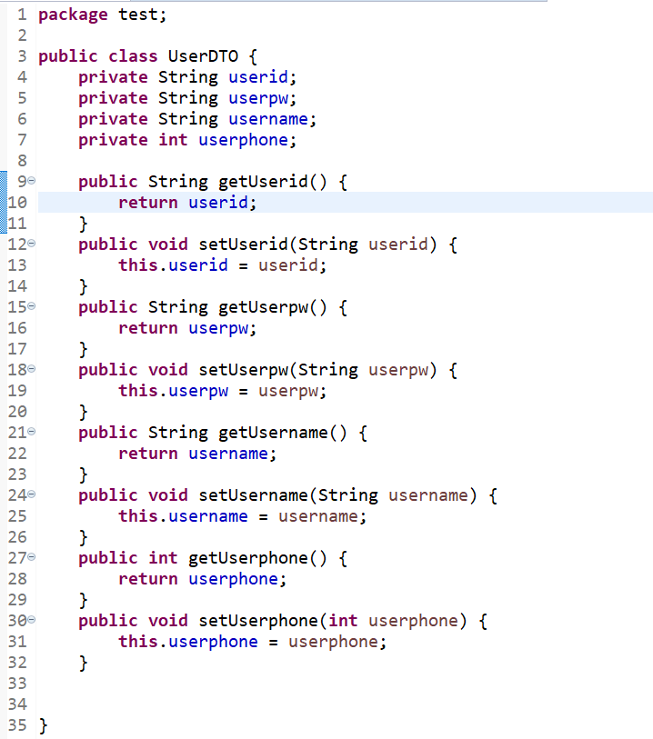 UserDTO 클래스에서 현재 변수명을 userid로 사용중인데 user_id로 바꾸고 싶을 수도 있다. 만약 이 경우 객체필드코드는 잘 작동을 할까? 정답은 Yes이다.