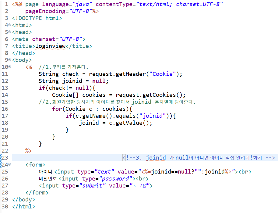 네번째로는, 회원가입한 당사자 정보를 joinid 쿠키에 넣어두었으므로 로그인창에서 아이디에 joinid 쿠키를 가져와서 띄어주면 완성이다.