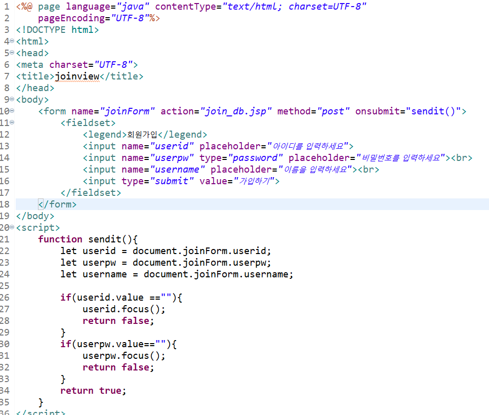 1)joinview.jsp 파일을 만들어서 회원가입폼을 생성한다.