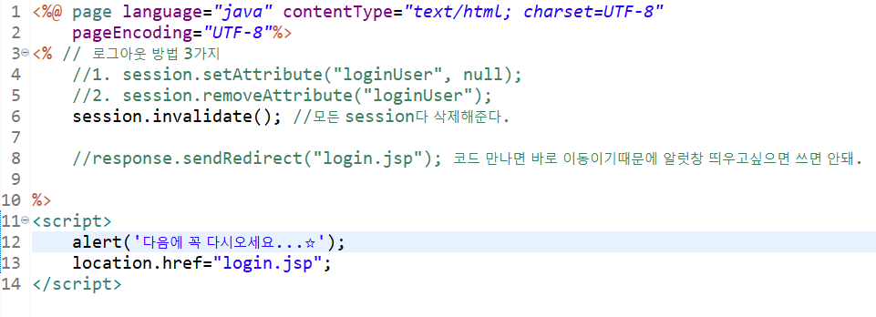 4.session.invalidate(); :세션에 있는 모든 값 제거해준다.