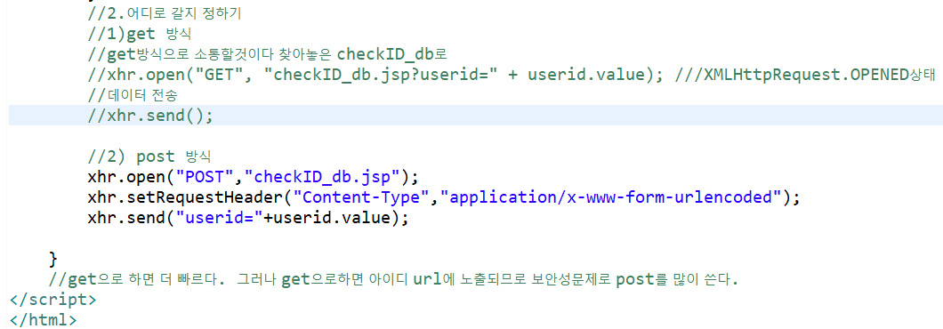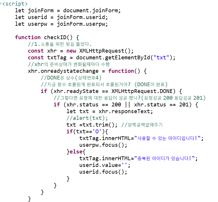 3) 중복 체크시 db와 소통을 위해 xhr 을 이용한다.
