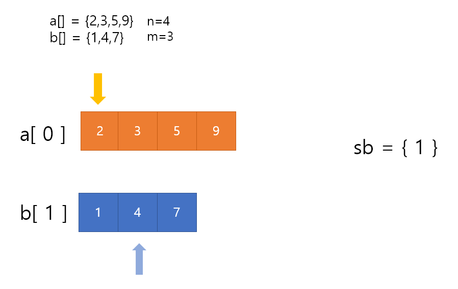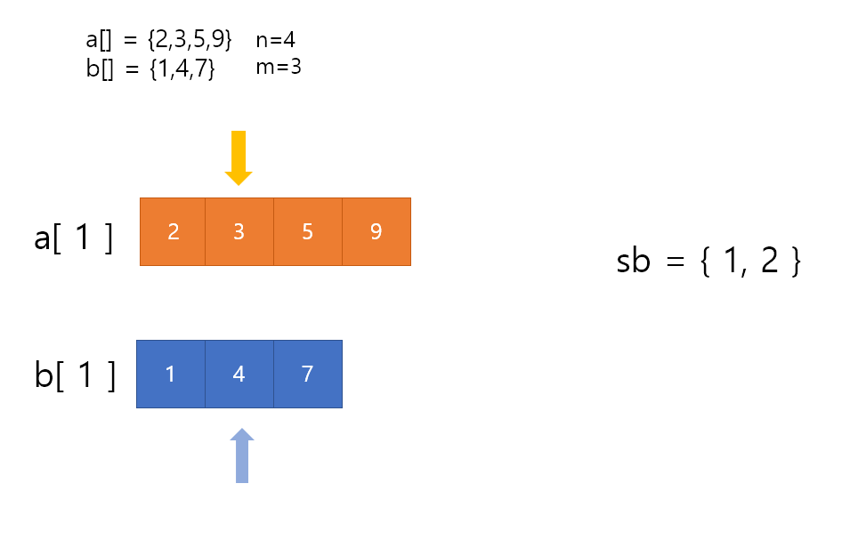 while(p1<n && p2<m) { //두개의 배열 길이만큼만 탐색해야 하므로